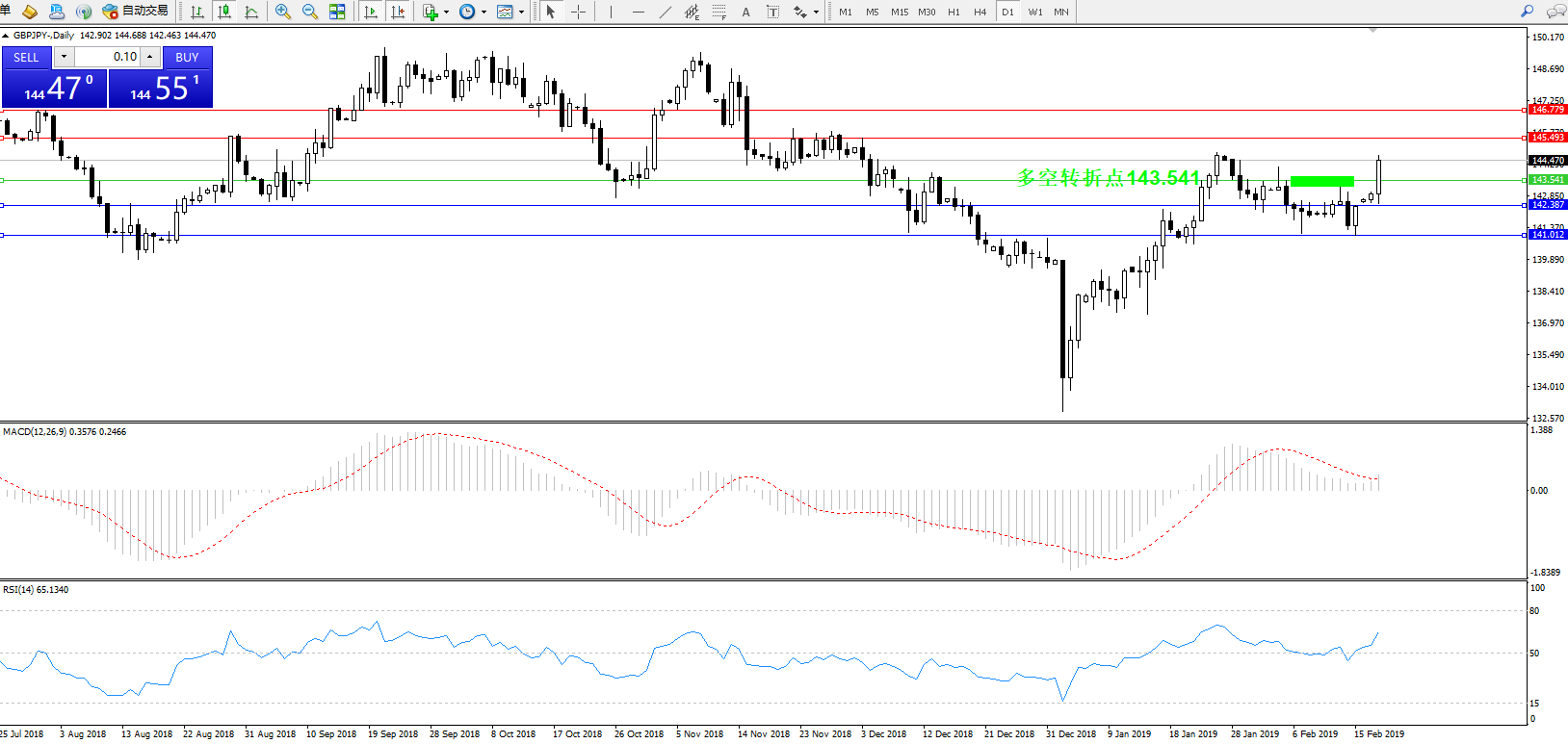 交易策略:143.541上方看涨,目标143.493、146.779