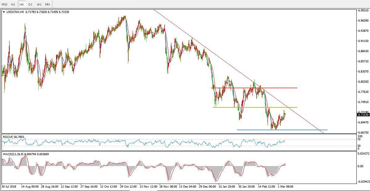 美元兑人民币USDCNH 4小时图: