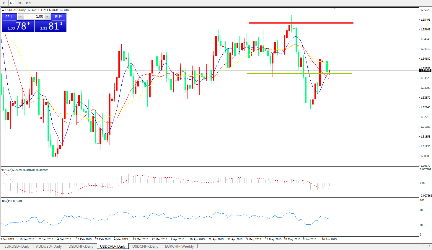 美元兑加元USDCAD 日线图: