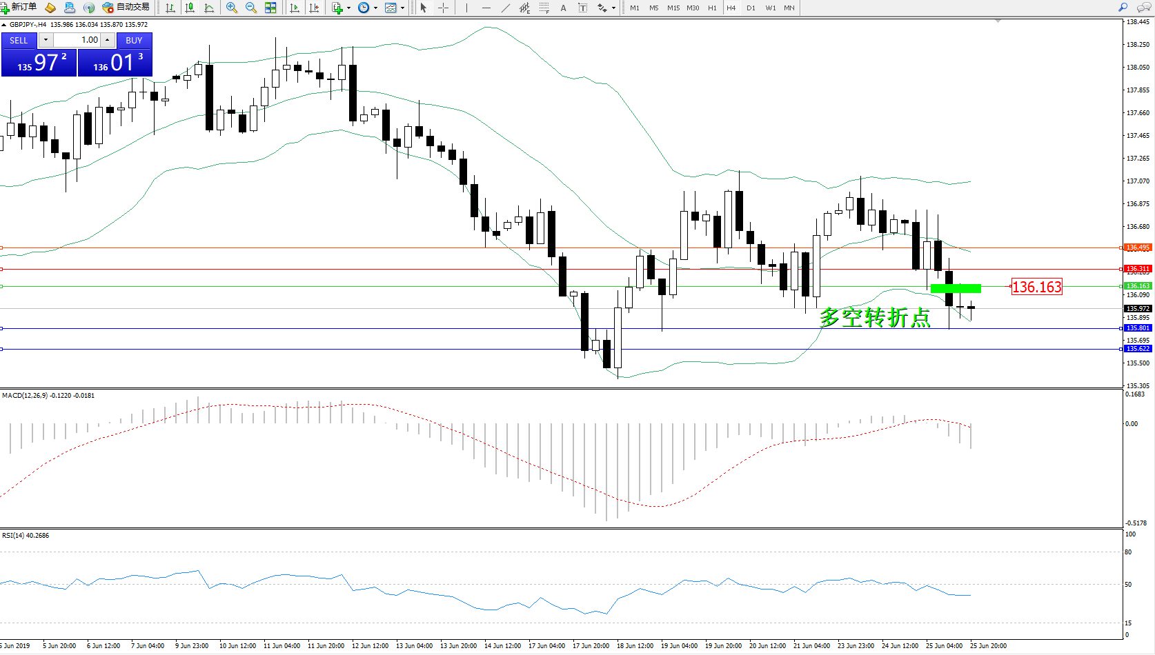 交易策略:136.163下方看跌,目标135.801、135.622