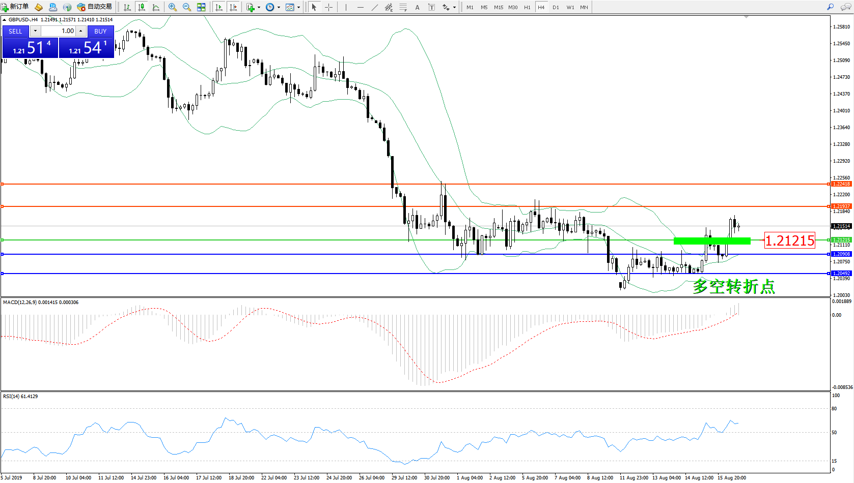 英镑美元GBPUSD ——4小时K线图显示:
