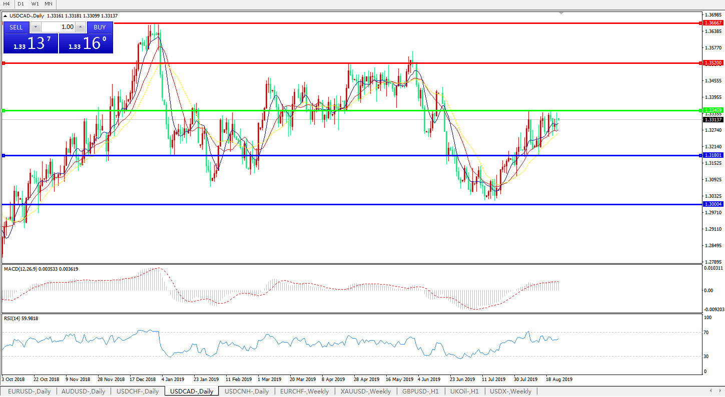 美元兑加元USDCAD 日线图: