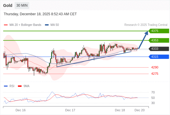 在 4315 之上,看涨,目标价位为 4353 ,然后为 4375 。