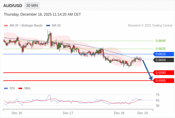在 0.6615 之下,看跌,目标价位为 0.6580 ,然后为 0.6565 。