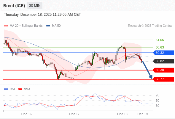 在 60.32 之下,看跌,目标价位为 59.30 ,然后为 58.77 。