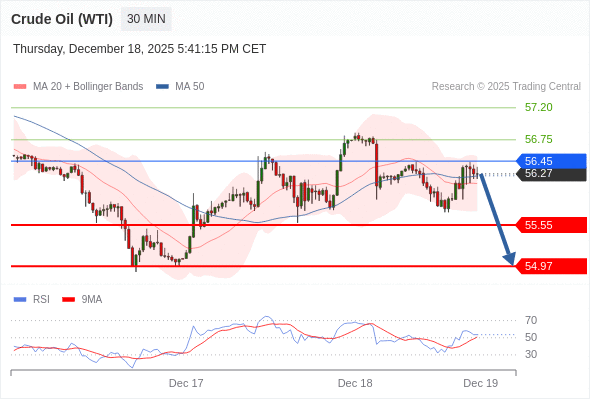 交易策略: 在 56.45 之下,看跌,目标价位为 55.55 ,然后为 54.97 。