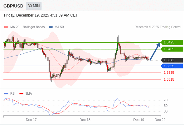 在 1.3355 之上,看涨,目标价位为 1.3405 ,然后为 1.3425 。