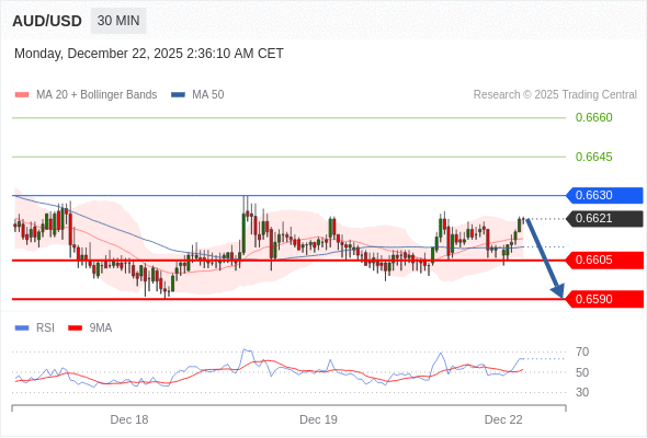在 0.6630 之下,看跌,目标价位为 0.6605 ,然后为 0.6590 。