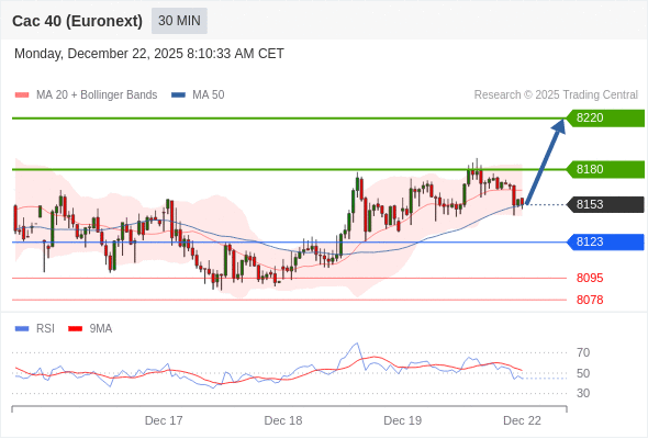 在 8123 之上,看涨,目标价位为 8180 ,然后为 8220 。