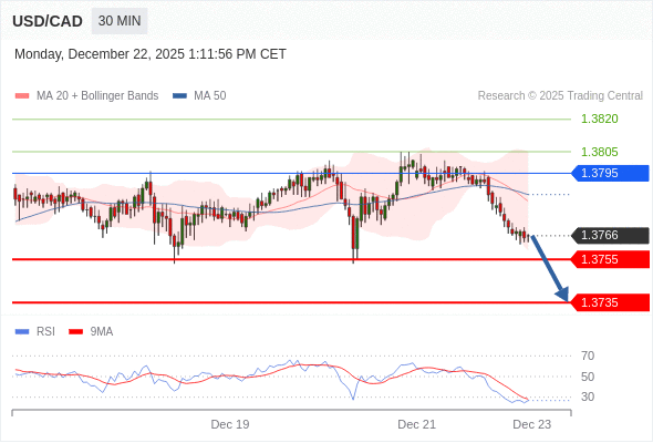 在 1.3795 之下,看跌,目标价位为 1.3755 ,然后为 1.3735 。