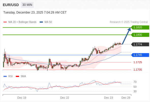 在 1.1745 之上,看涨,目标价位为 1.1800 ,然后为 1.1820 。