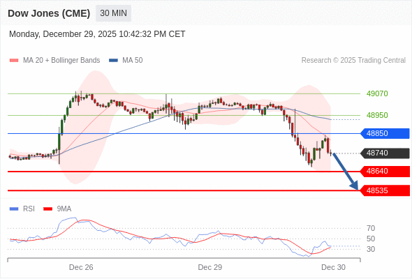 交易策略: 在 48850 之下,看跌,目标价位为 48640 ,然后为 48535 。