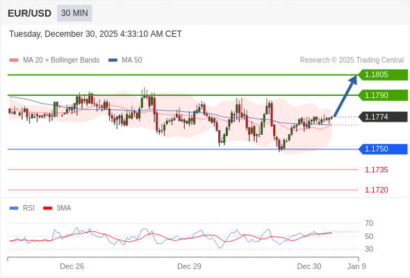 在 1.1750 之上,看涨,目标价位为 1.1790 ,然后为 1.1805 。