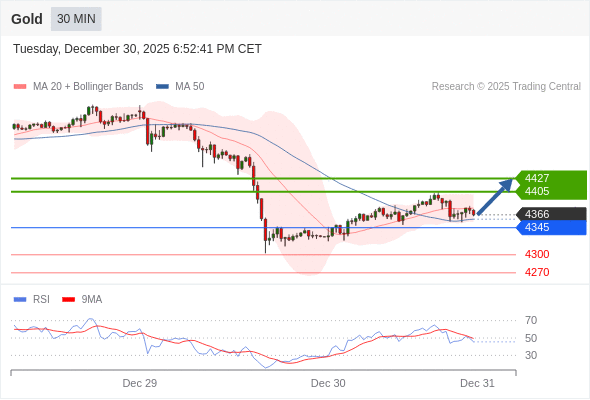 在 4345 之上,看涨,目标价位为 4405 ,然后为 4427 。