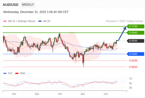 在 0.6300 之上,看涨,目标价位为 0.6940 ,然后为 0.7130 。