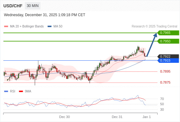 在 0.7915 之上,看涨,目标价位为 0.7960 ,然后为 0.7965 。
