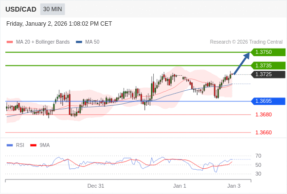 在 1.3695 之上,看涨,目标价位为 1.3735 ,然后为 1.3750 。