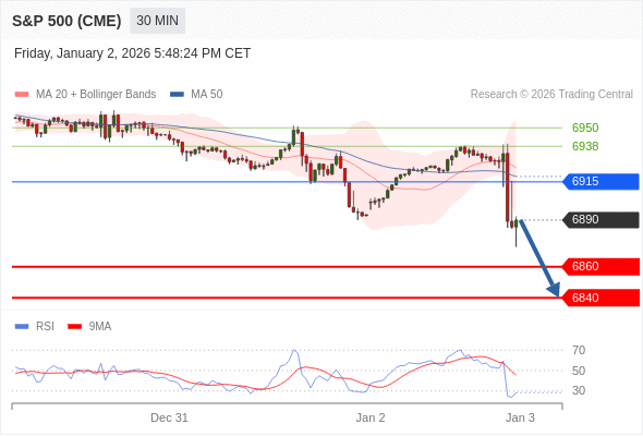 交易策略: 在 6915 之下,看跌,目标价位为 6860 ,然后为 6840 。