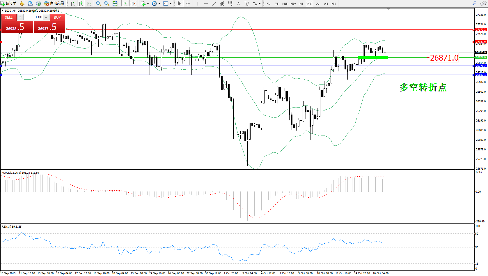 交易策略:26871上方看涨,目标27037、27170