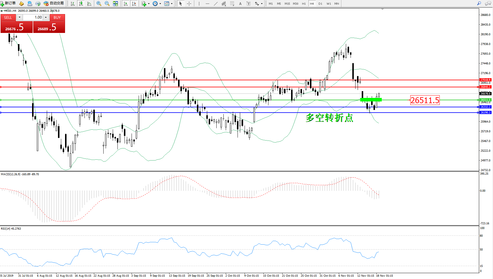 恒指HK50 ——4小时K线图显示: