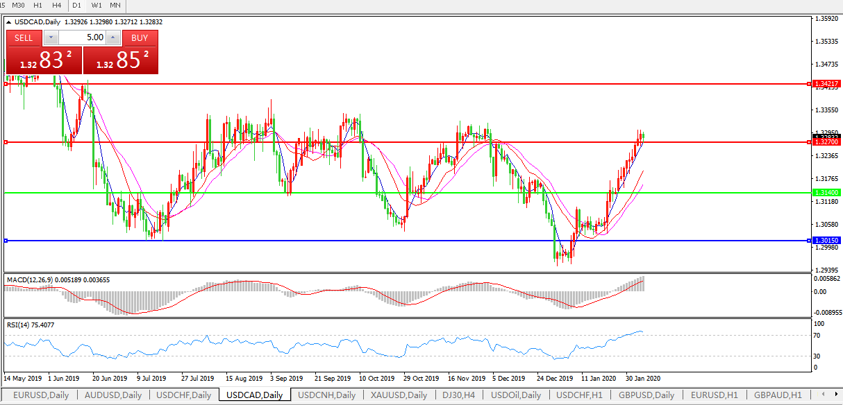 美元兑加元USDCAD 日线图: