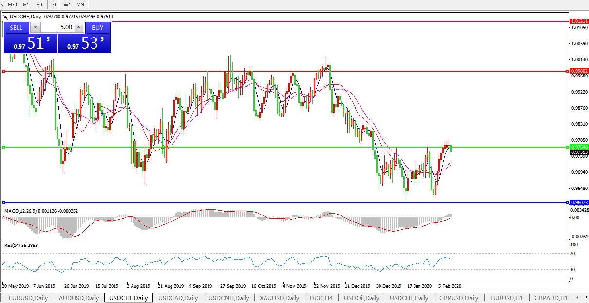 交易策略:0.9765下方看跌,目标0.9600、0.9550