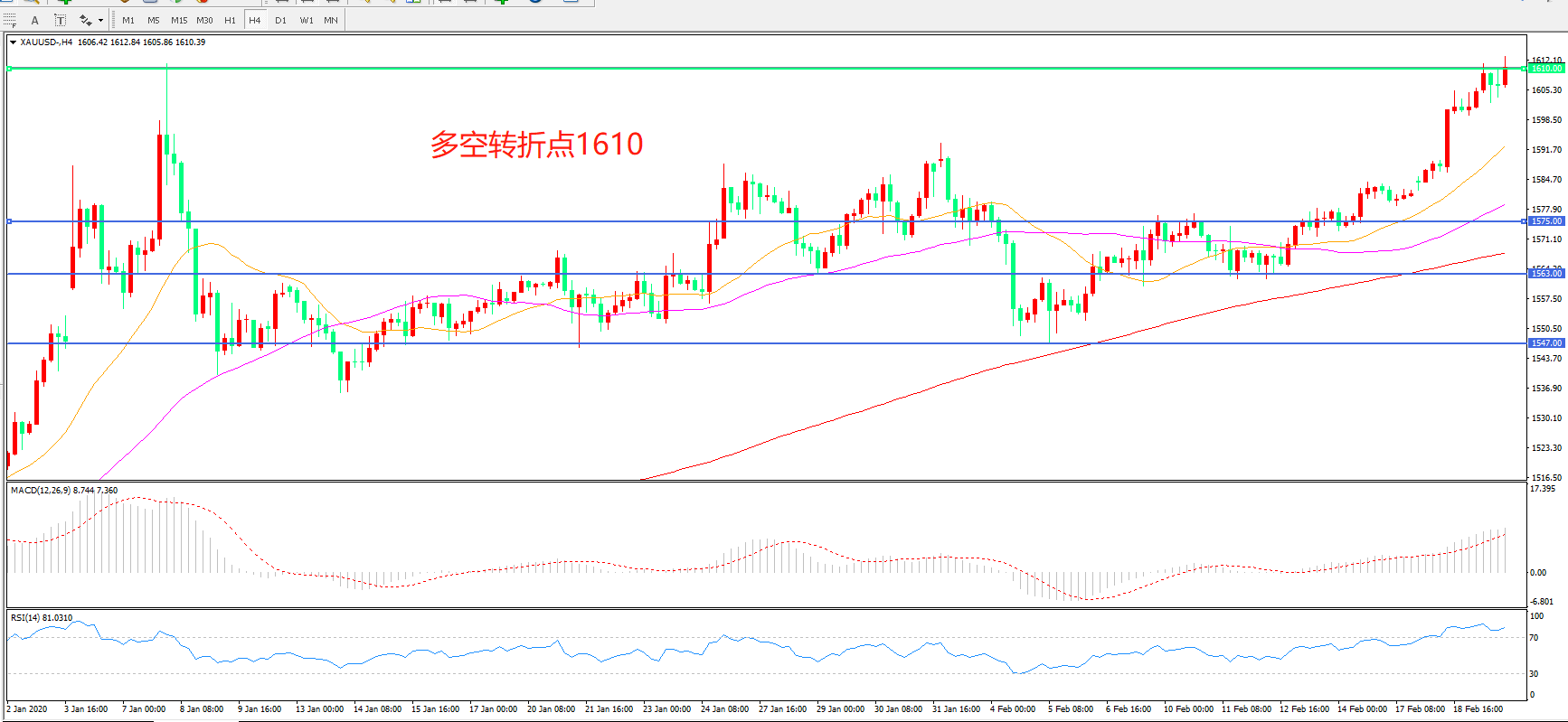 交易策略:在1610.00之上看涨,目标1650.00 1700.00