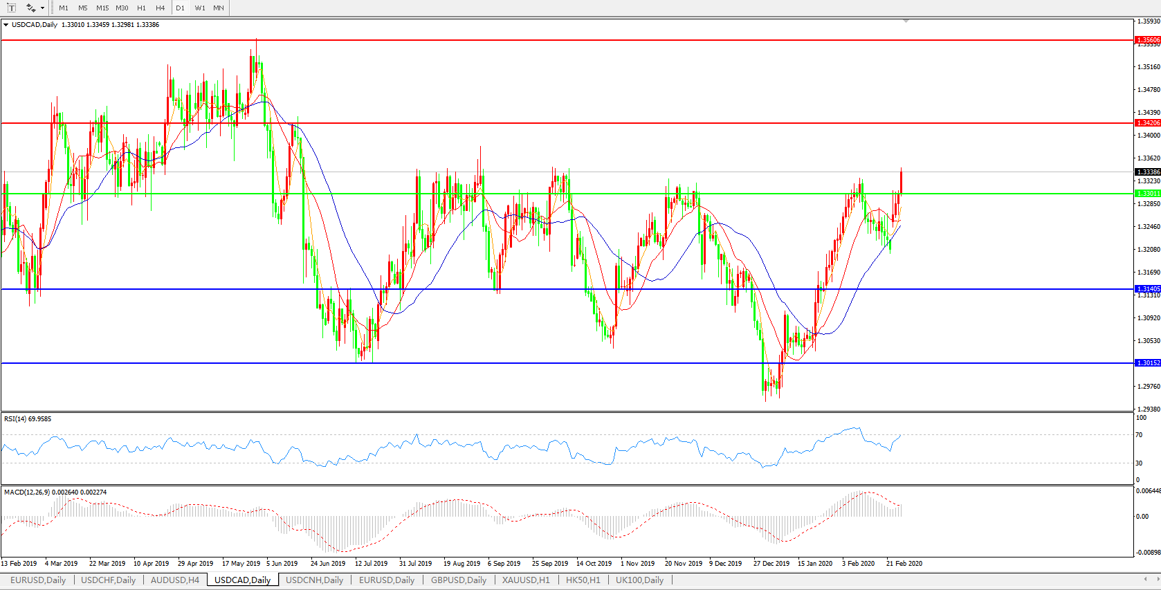 美元兑加元USDCAD 日线图: