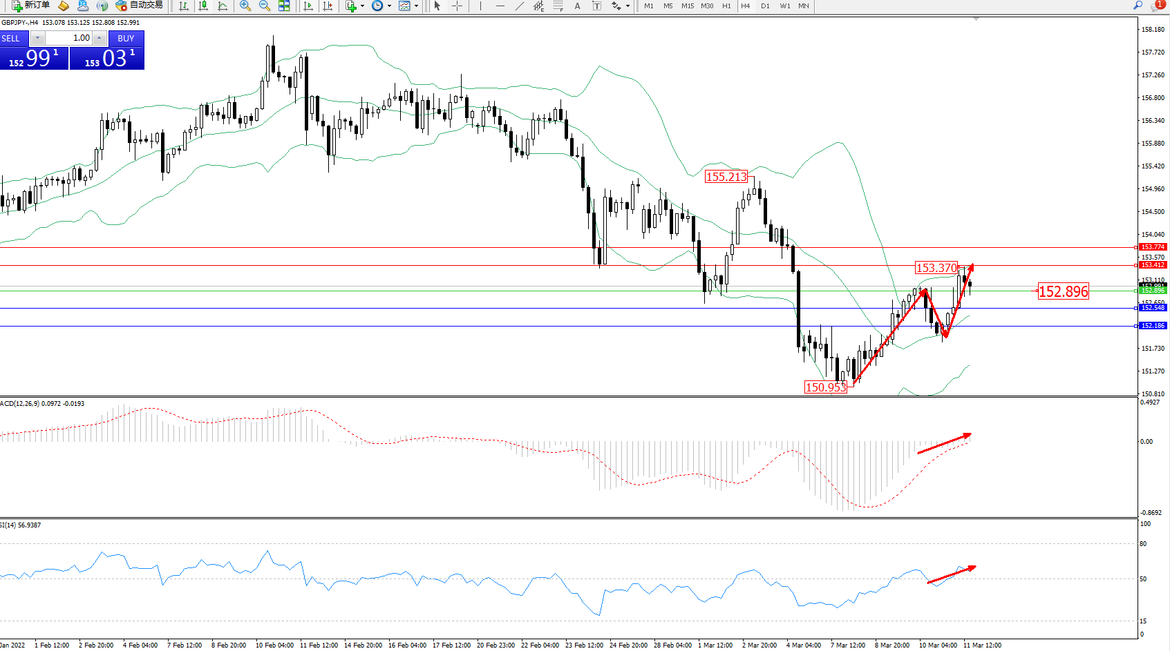 英镑兑日圆维持152.991附近震荡,备受关注的俄乌第三轮谈判未能就停火取得任何进展,英国方面宣布对支持普京在乌克兰开展军事行动的386名俄罗斯议员实施制裁。将冻结受制裁的议员在英国的资产,并禁止他们入境英国。
