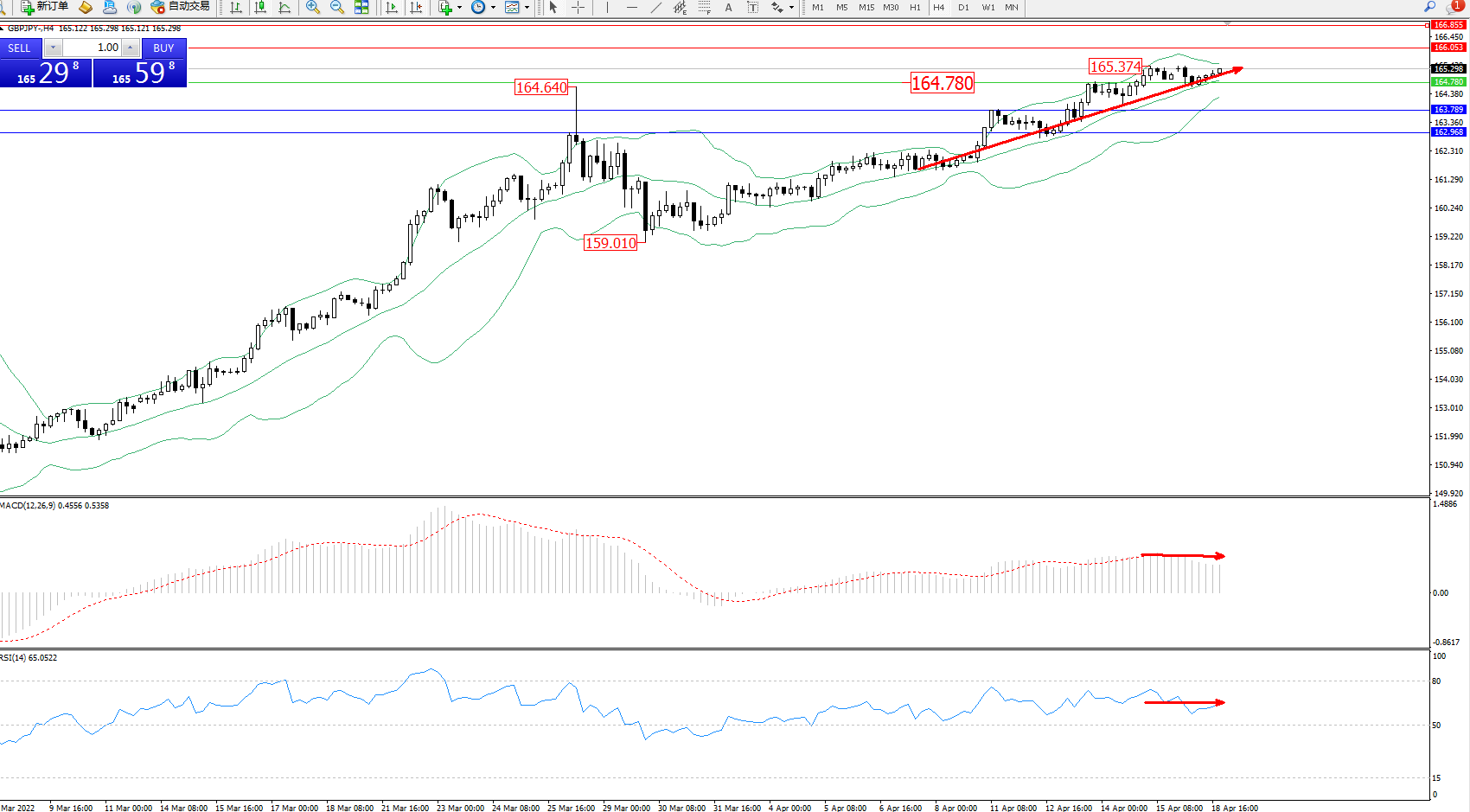 交易策略:164.780上方看涨,目标166.053、166.855