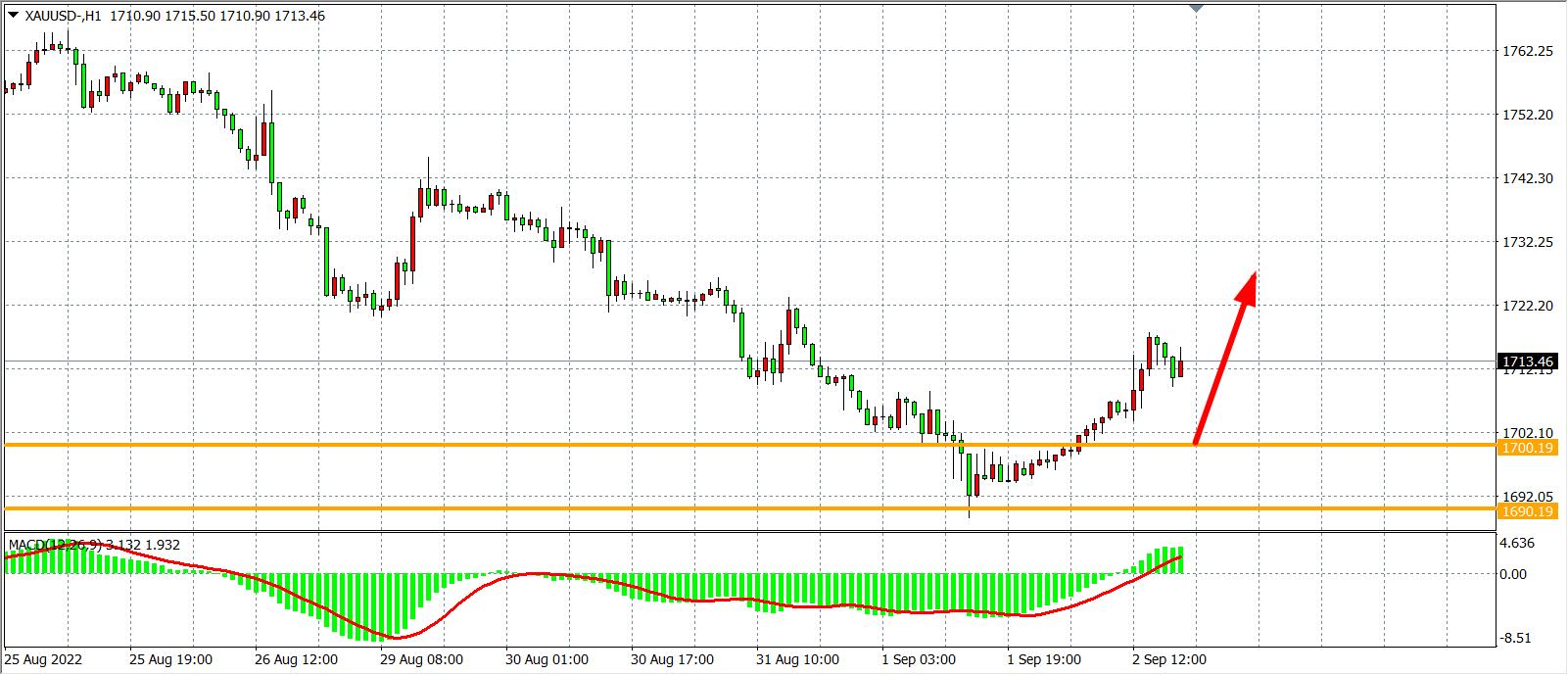 周五(9月2日)美国周五公布的8月非农就业31.5万,略高于预期的30万,但是失业率意外上升至3.7%。受数据影响,美元指数盘中震荡下滑,现货黄金反弹至日内高点1715美元/盎司,在美联储以控制通胀为优先任务的当下,失业率小幅上升不会打断美联储继续大幅加息的路径,或意味金价的跌势或难改变。