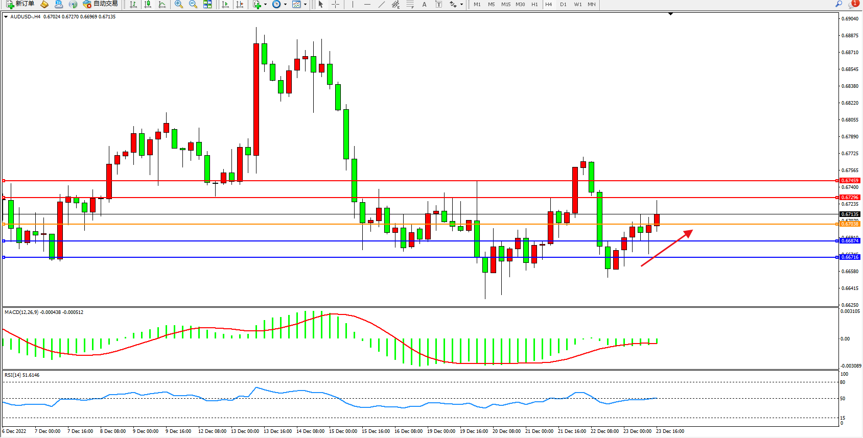 澳元兑美元维持0.67135附近震荡,澳大利亚10年期国债收益率本周上涨近40个基点,有望创下6月以来的最大涨幅,因日本投资者的资金回流国内将削弱对澳大利亚国债的需求。再加上全球央行在本月普遍的鹰派倾向,澳大利亚国债的超值表现可能已经走到了尽头。周一圣诞节休市一日。