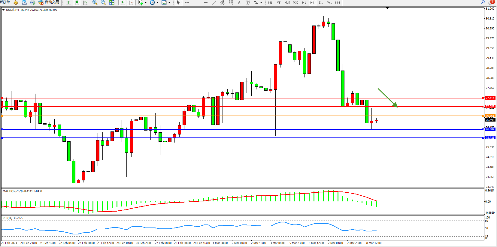 交易策略:76.661下方看跌,目标76.087  75.729