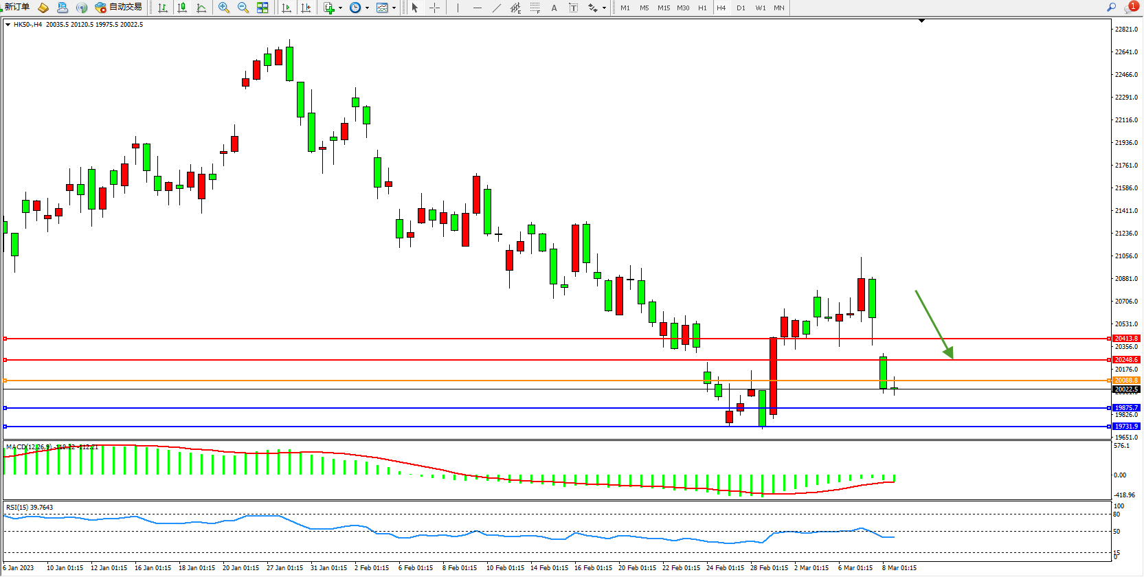 恒指HK50 4小时图