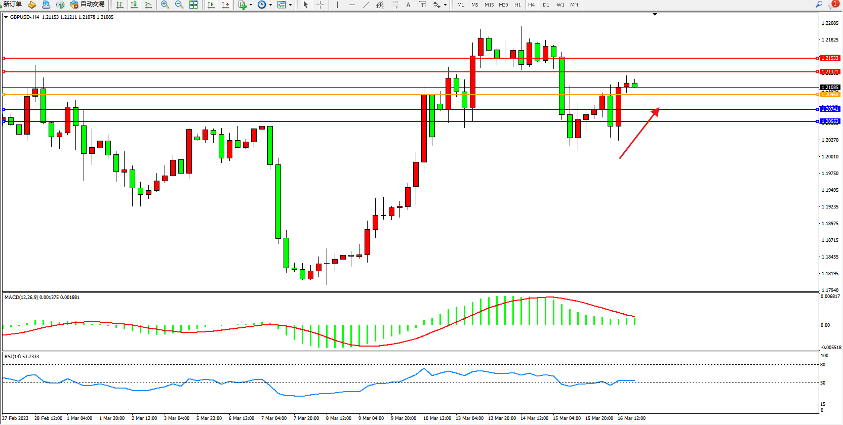 阻力位:1.21321 1.21533