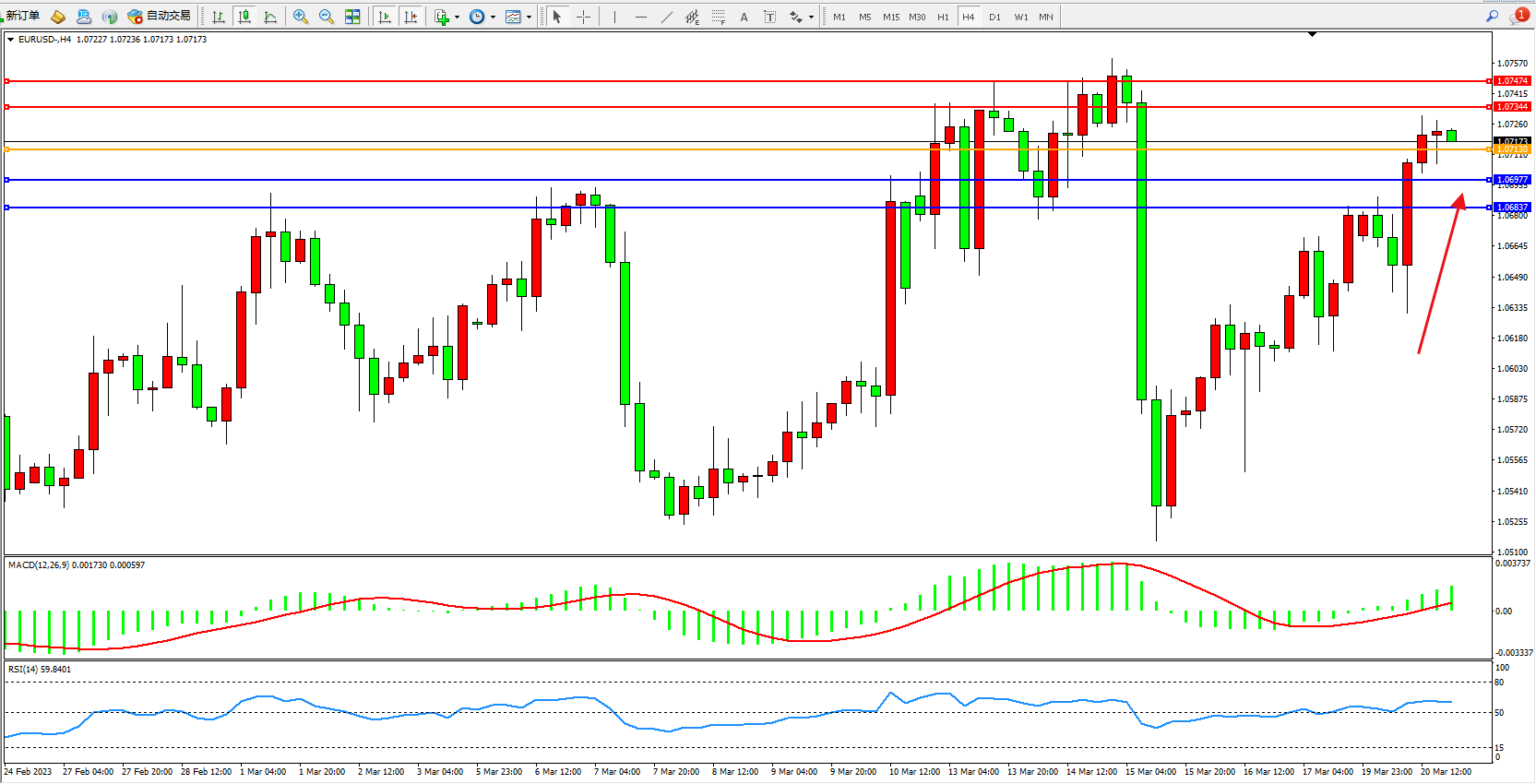 阻力位:1.07344 1.07474