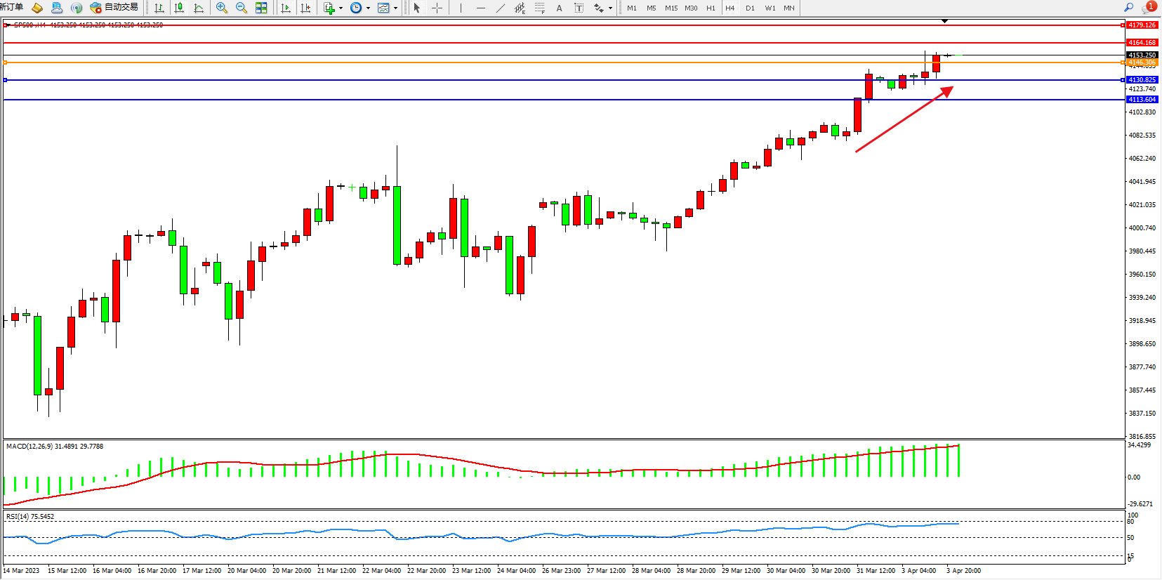 标普SP500——4小时K线图显示: