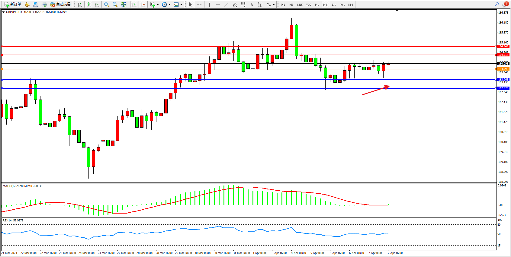 交易策略:163.798上方看涨,目标164.517 164.945