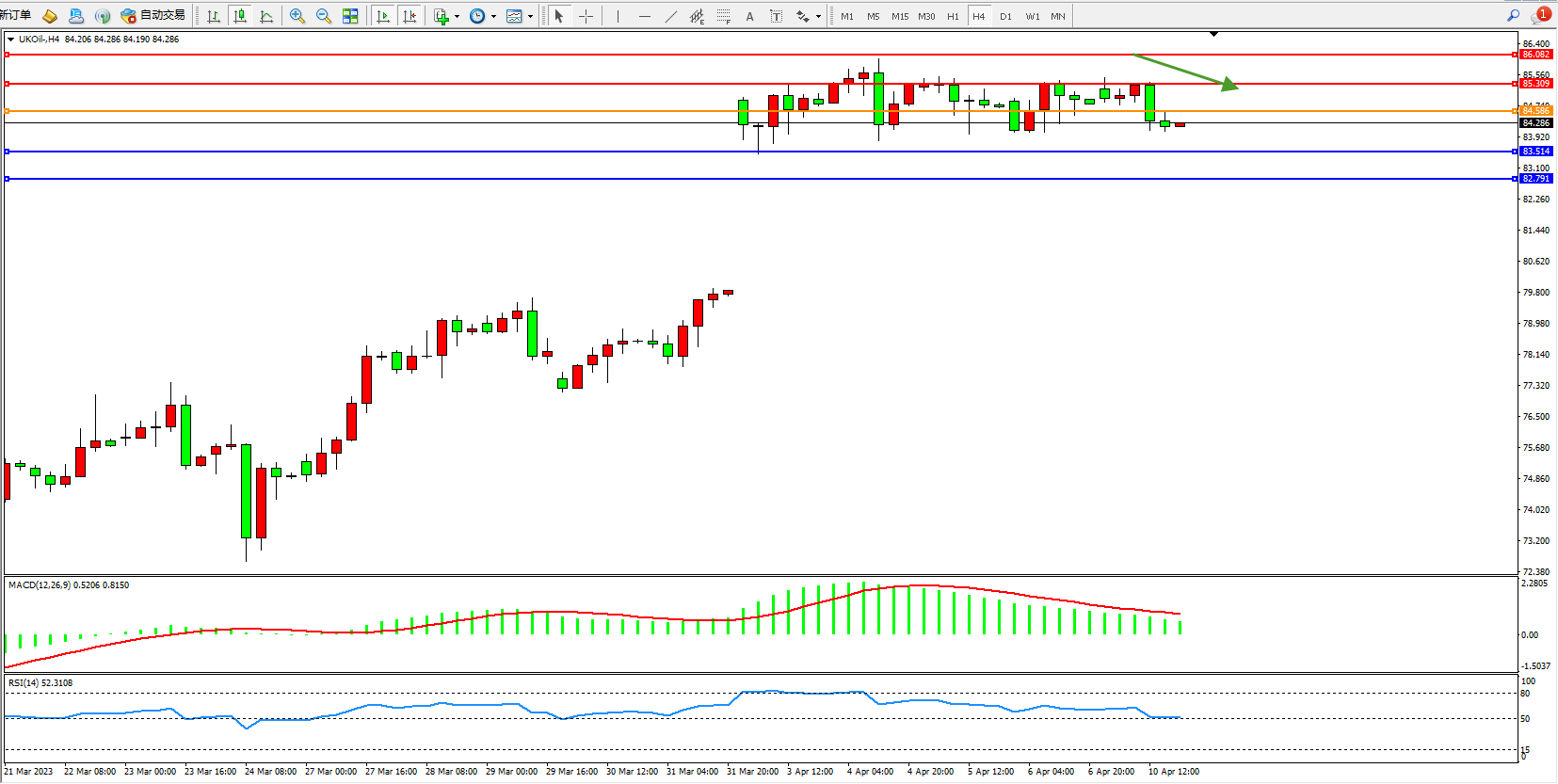 4小时图看:高位短期维持整理,空头动力开始缓慢涌现,市场短期有继续回撤迹象,MACD指标处于多头区域缓慢下行,RSI指标处于50均衡线附近弱势徘徊;