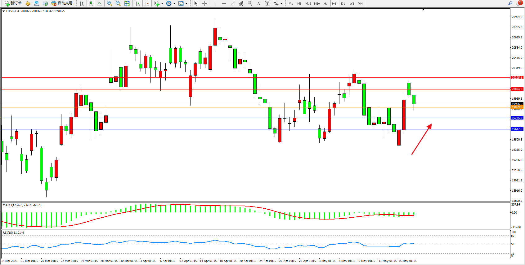 恒指HK50 4小时图