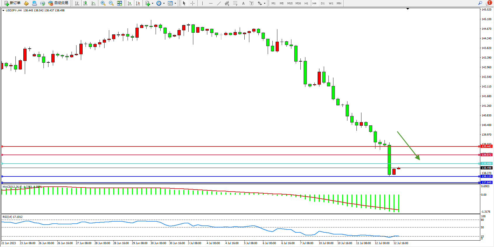 交易策略:138.688下方看跌,目标138.119 137.849