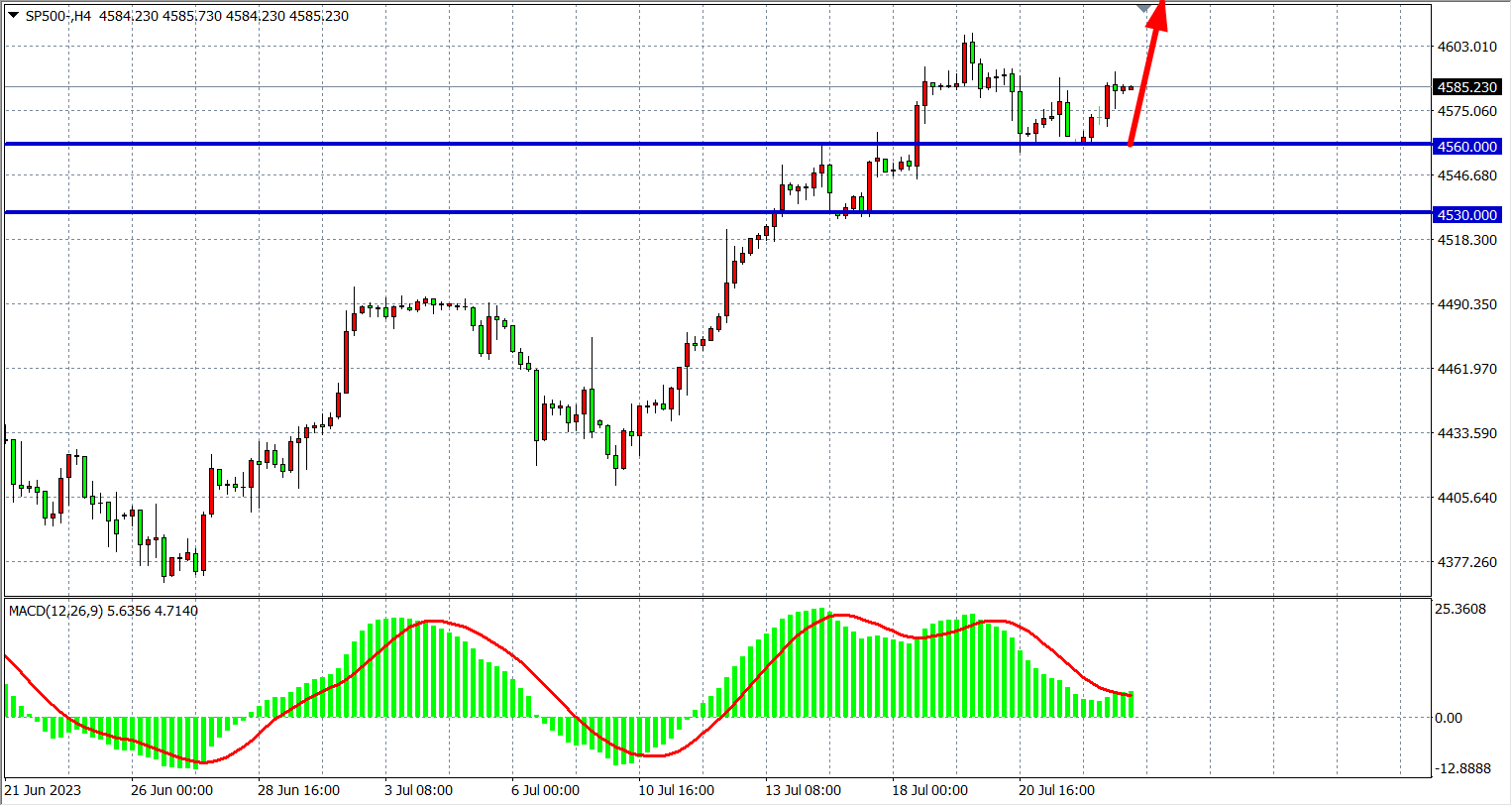 交易策略:4560 上方看涨,目标4600 4640