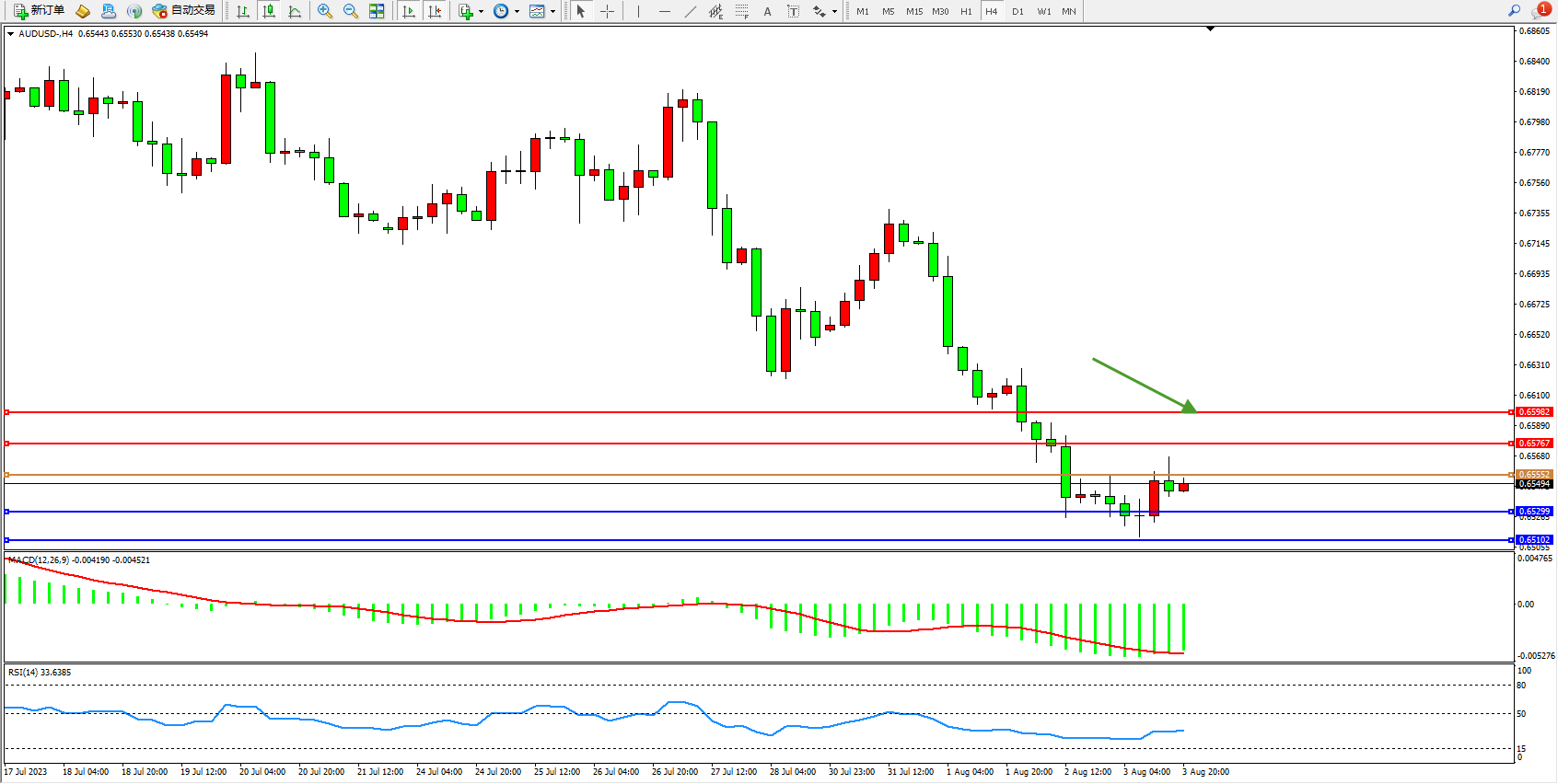 交易策略:0.65552下方看跌,目标0.65299 0.65102