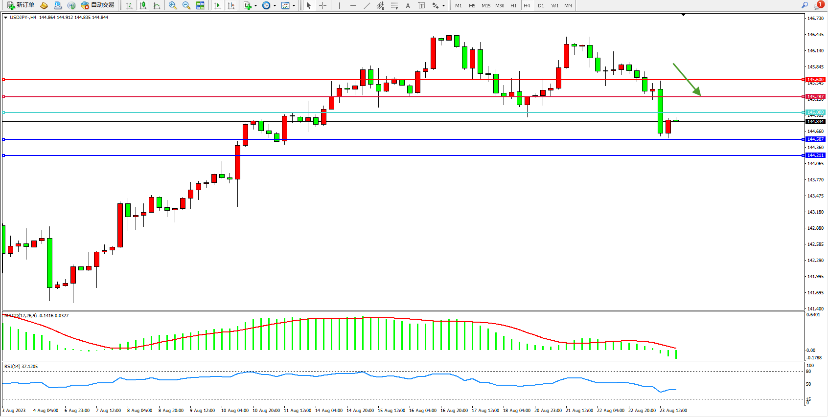 交易策略:145.000下方看跌,目标144.507 144.211