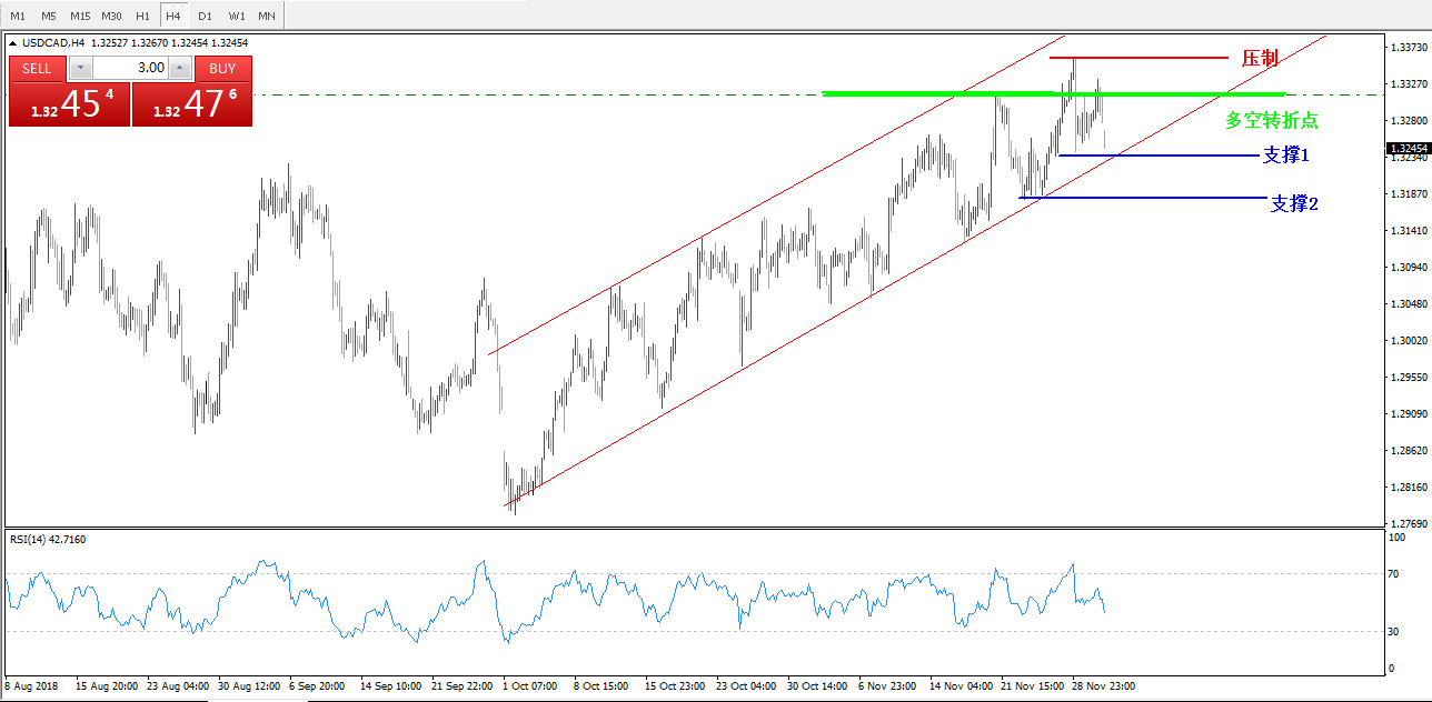 基本面简析: 美墨加协定的签署,中美贸易谈判的大的突破,俄罗斯对减产的认可提振油价,均一定程度施压美元兑加元。