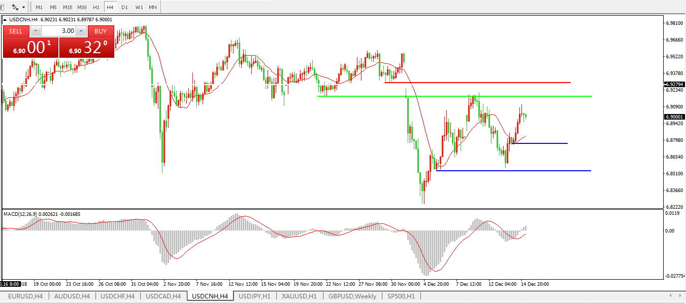备选策略: 在6.9200之上,看涨,目标价位为6.9300,然后为6.9557。