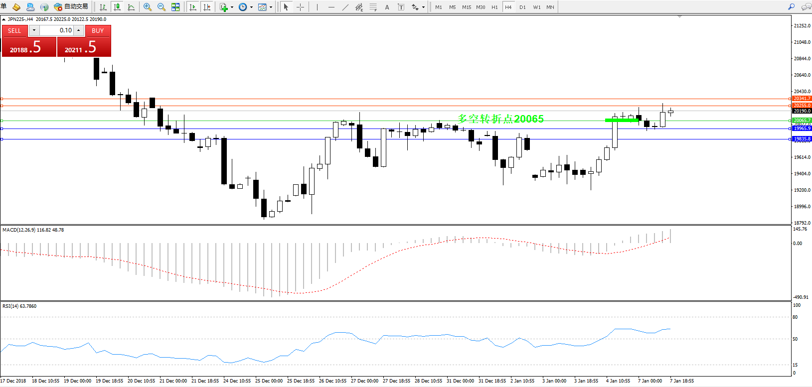日经指数JPN225——4小时K线图: