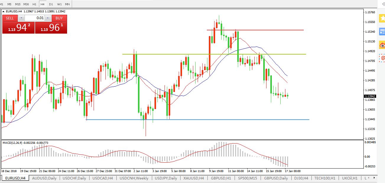欧元兑美元EURUSD 4小时图: