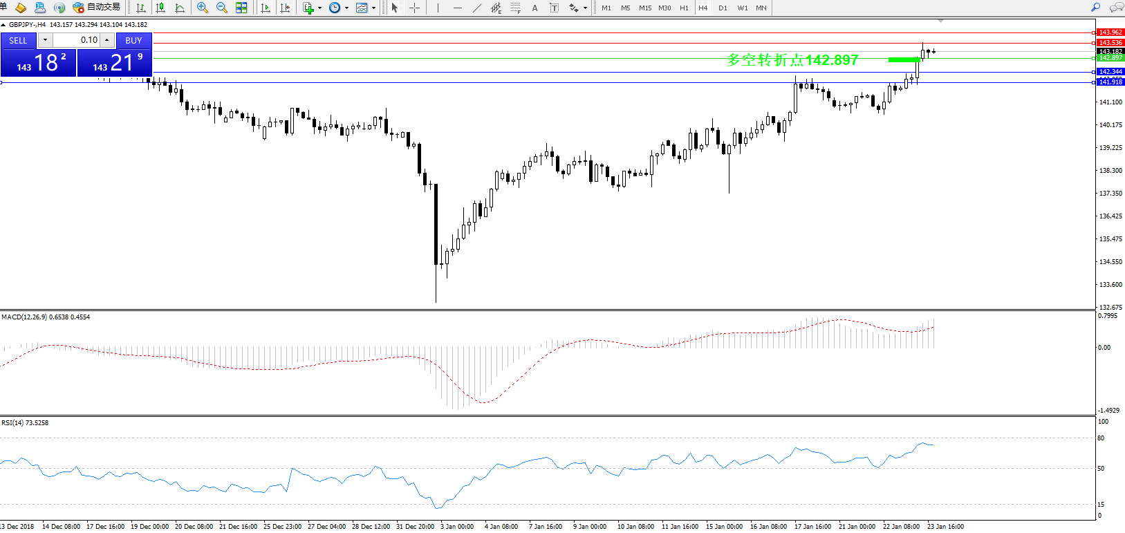 交易策略:142.897上方看涨,目标143.536、143.962