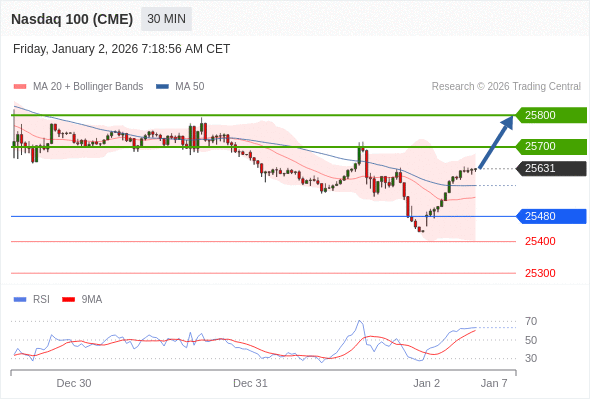 在 25480 之上,看涨,目标价位为 25700 ,然后为 25800 。
